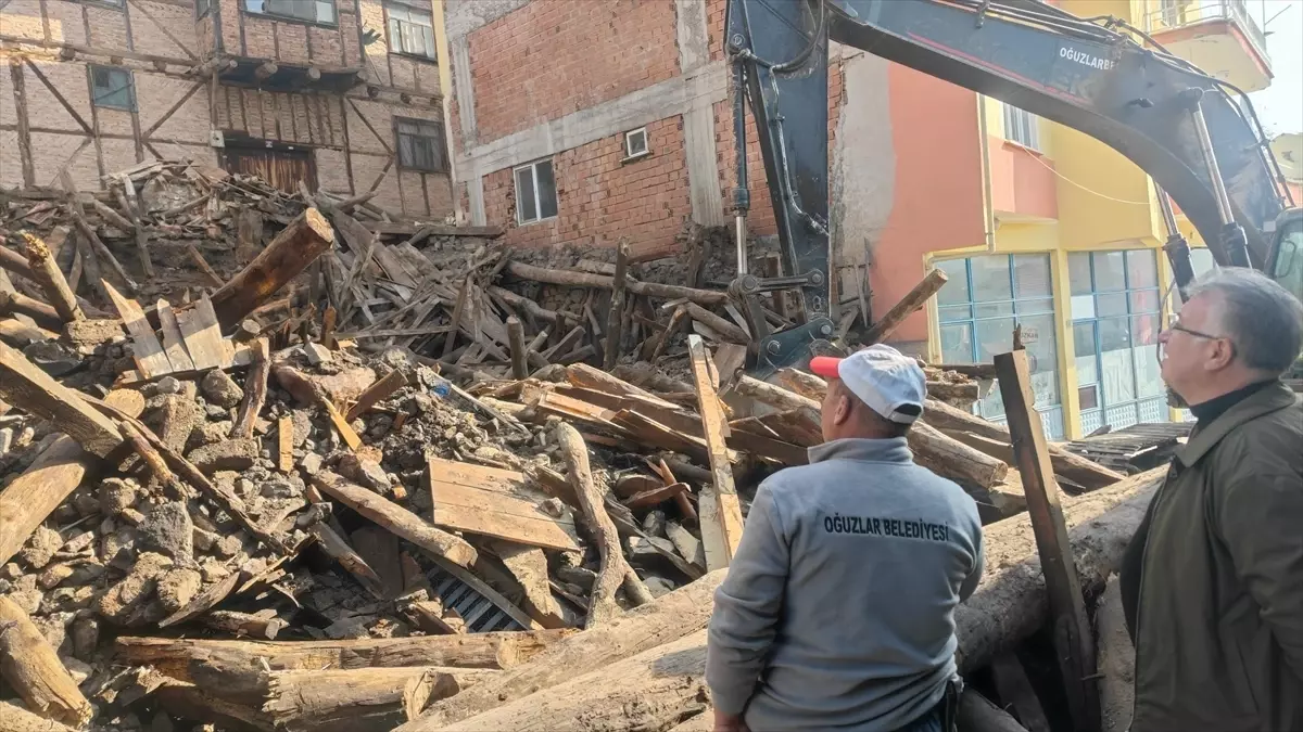 Oğuzlar’da tehlike arz eden metruk ev yıkıldı, malzemeler ihtiyaç sahiplerine dağıtılacak.