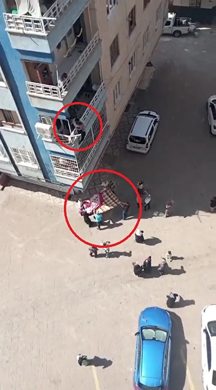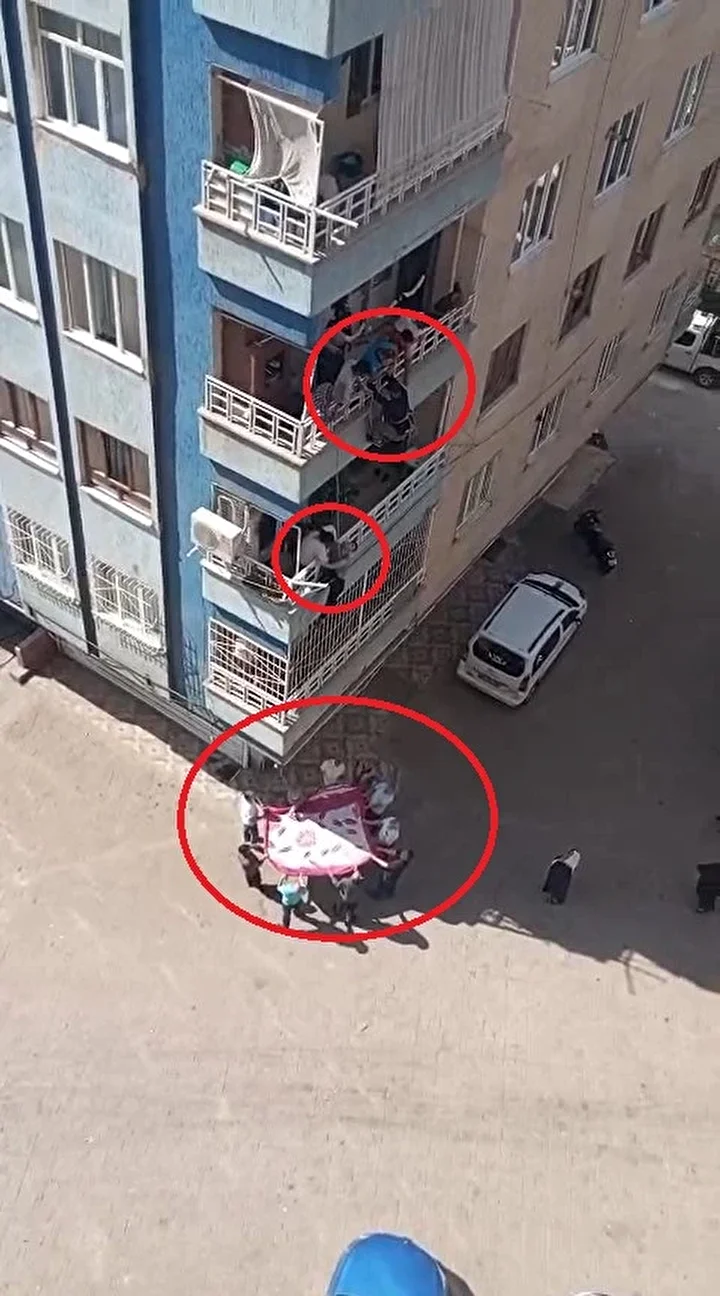 Komşular, çocuğun düşme ihtimaline karşı binanın altında battaniye açtı. Komşulardan Emin Demir ise 3’üncü kattan ip sarkıtarak 2’nci kata indi.