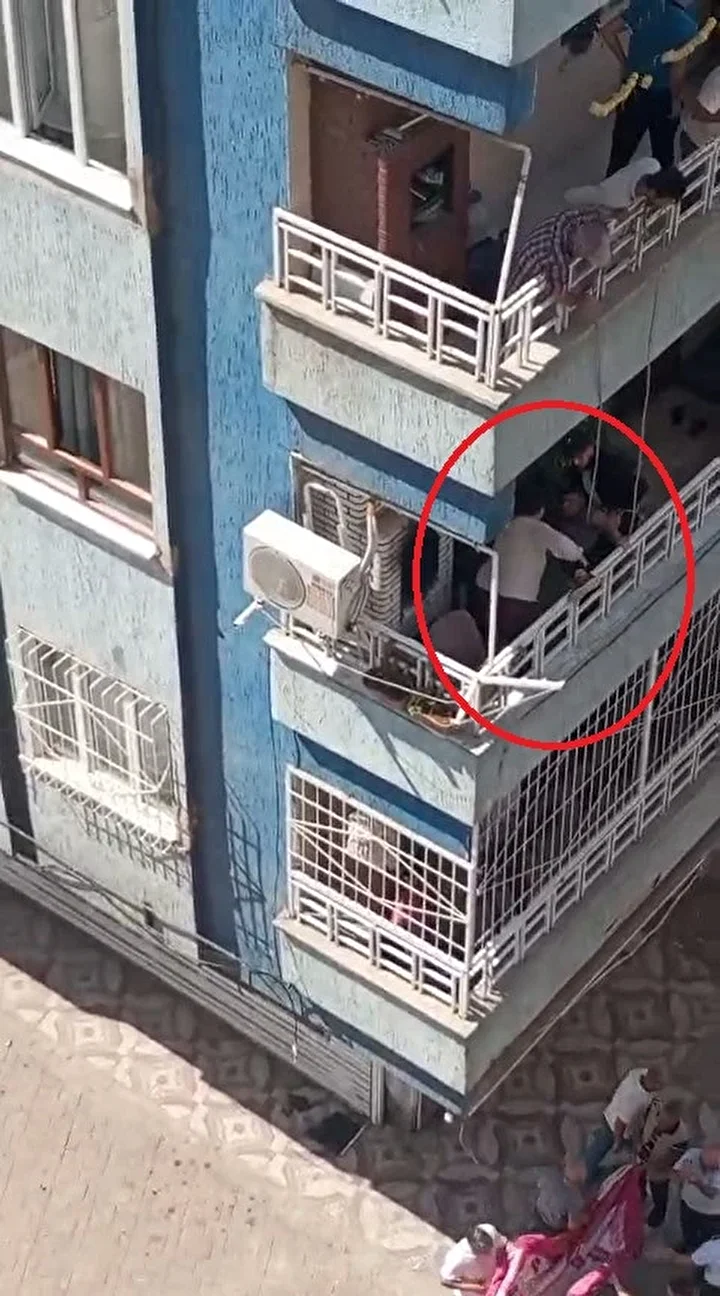 Bir süre sonra çocuk, dengesini kaybetti. Çocuk aşağıya düşerken bir aile bireyi onu yakaladı. Bu kişi, aşağı sarkan çocuğu yukarıya çekmekte zorlanınca panik yaşandı.