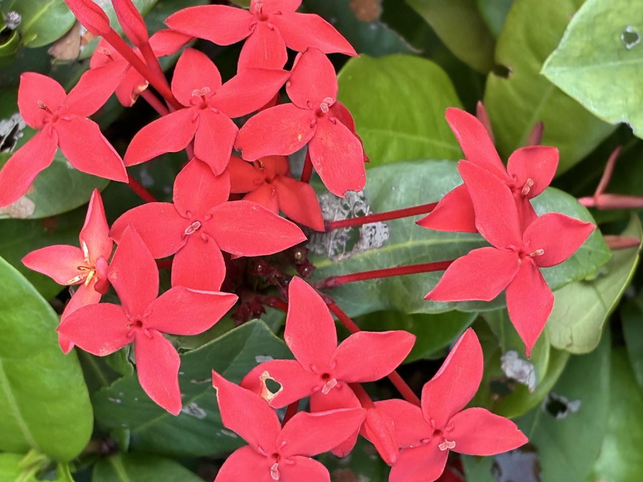 Şehrin en erken fark edilen çiçeği orkide. Beyazdan mora uzanan tonlarıyla kamusal alanlarda yoğun şekilde tercih ediliyor. Sokaklarda en sık rastlanan bir diğer tür ise Ixora, yerel adıyla “Jungle Flame”. Parlak kırmızı yıldız biçimli çiçekleriyle tropik sıcaklığın enerjisini yansıtıyor. Yol kenarlarında, park girişlerinde ve konut bölgelerinde kümeler halinde açarak şehir içinde ritmik bir renk hareketi oluşturuyor. Dayanıklı yapısı sayesinde yoğun yağışlara, yüksek neme ve direkt güneşe karşı direnç gösteren bir tür.
