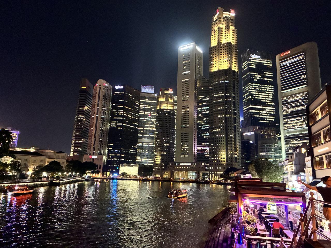 Singapur gecesi hem hareketli hem sakin, hem modern hem geleneksel bir ritim taşıyor. Singapur Nehri çevresi, şehrin silüetinin en etkileyici noktalarından birini oluşturuyor. Nehir üzerindeki ışık yansımaları bu yoğun mimariyi yumuşatarak gece manzarasını dengeliyor.